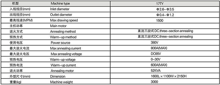 裸铜线系列中、伸连续退火机+预热机技术参数